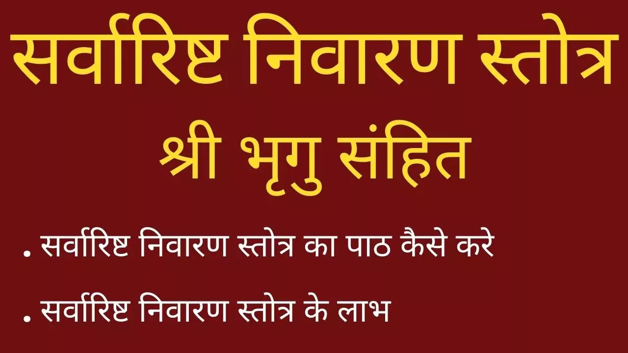सर्वारिष्ट निवारण स्तोत्र श्री भृगु संहित से लिया गया है जिसे श्री भृगु ऋषि द्वारा रचा गया था। यह सभी निवारण स्तोत्रो में सर्वोत्तम है।